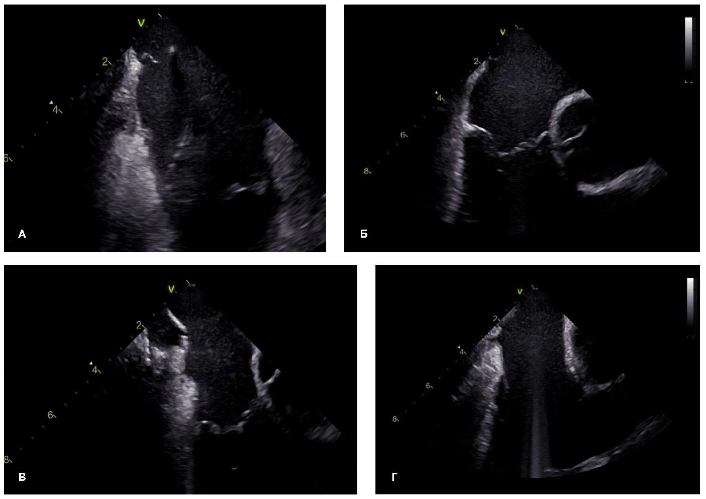 Панель В — центральная часть перешейка без патологических углублений или дубликатур эндокарда. На панели Г визуализируются углубления («карманы») в центральной и дистальной частях перешейка.