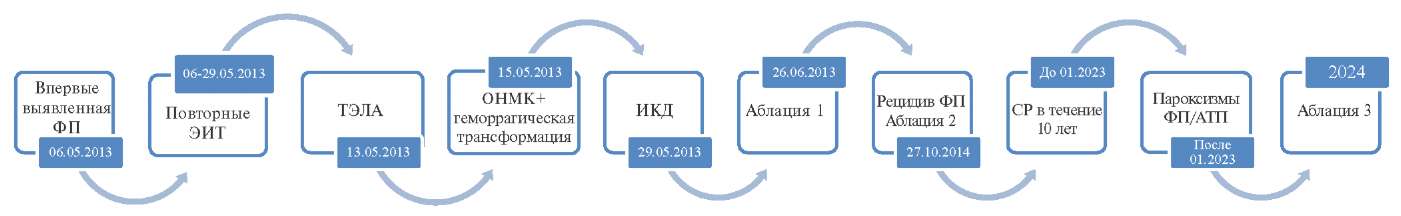Представлен клинический случай ведения пациентки с ФП и КАА с наблюдением в течение 12 лет (рис. 2).