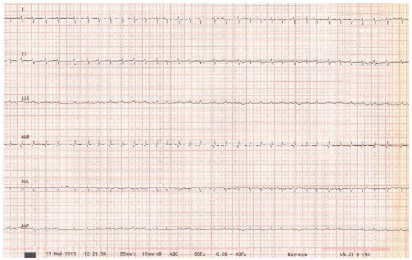 Рис. 3. Электрокардиография при поступлении в стационар.