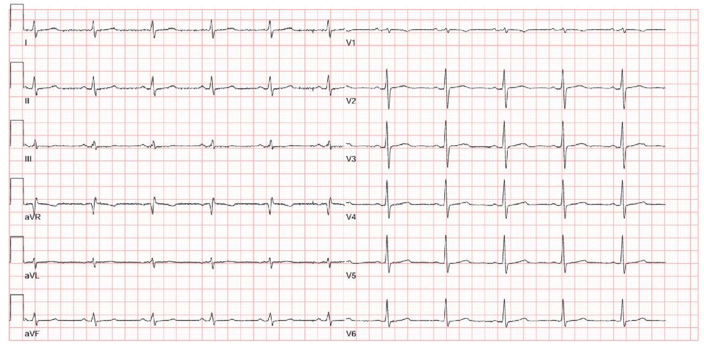Рис. 5. Электрокардиография от 2024г на фоне атипичного ТП.
