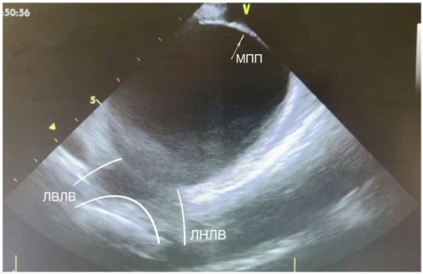 Сокращения: ЛВЛВ — левая верхняя легочная вена, ЛНЛВ — левая нижняя легочная вена, МПП — межпредсердная перегородка.